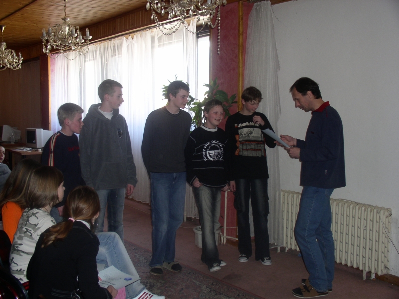 Prednáška nakoniec nebola až taká nudná, každý si odniesol diplom a nejakú tú vecnú cenu. Rozdelili sme sa do družín, a v tej chvíli začal boj medzi Utopenými dušami, Tsunami, Delfínmi a Veľrybami (originálne mená... =o).